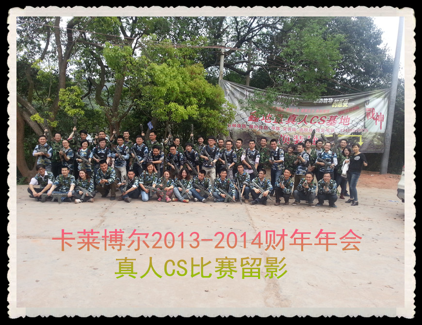 2014年4月11日,卡莱博尔“夯基固本,追梦创新”年度总结及优秀员工颁奖典礼在公司本部隆重举行,本次年会总结回顾2013财年度各项工作,同时对2014财年工作做出部署和规划,为了增进公司内部员工的交流和沟通,促进公司的企业文化发展,年会除总结会议外,还增加了轻松愉快的团队活动.本次财年年会包括以下环节:工作总结,颁发优秀员工,现场抽奖,百工堰烧烤,真人CS比赛。