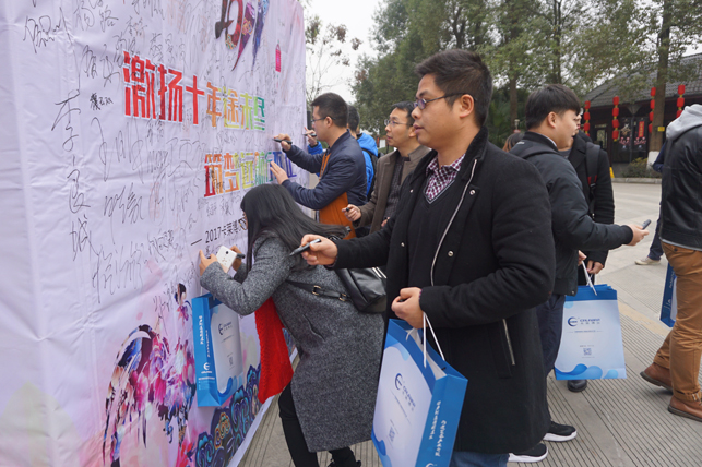 今年的签到别具一格的选择在背景板上签写祝福。到场的领导和同事们都认真写下对公司对自己的祝福!