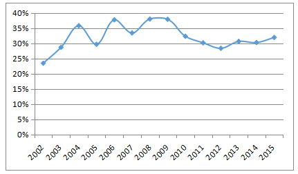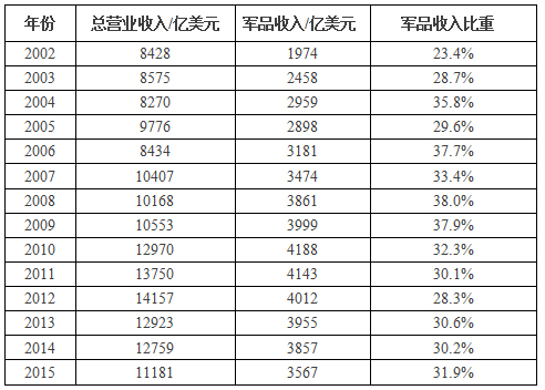 (二)军民品结构不断优化。上世纪80年代,我国开始实行军转民,取得了举世瞩目的成就,保持了军工队伍和能力的基本稳定。军工集团民品产值比重大体保持在70%-80%,明显高于美欧。从世界百强军工企业排行榜来看:2002年至2015年世界军工企业总体军品收入保持在25%-40%之间,近年来呈现下降趋势。世界军工巨头的军品比重相对较高。美国军工巨头的军品比重基本保持在70%以上,欧洲特大型军工企业军品比重约50%。俄罗斯的军工企业大部分以军品生产为主,军品收入占企业总收入的80%左右。从这些数据可以看出,我国军工集团的军民品结构已经非常优化,企业集团对军品的依赖程度大幅降低,武器装备寓军于民的态势基本形成。