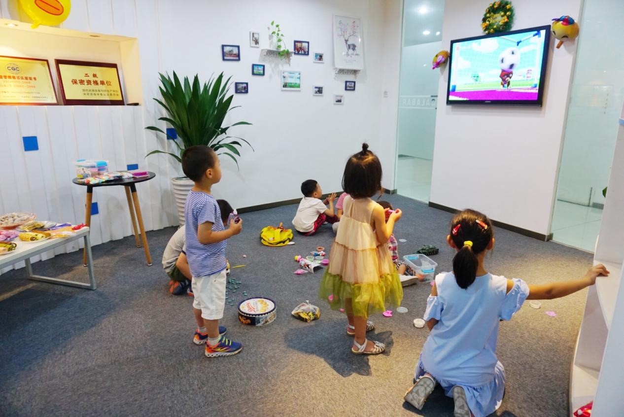 小朋友们总是能迅速熟悉起来,大家一起做游戏、画画,一起看动画片,一起在爸爸妈妈工作的地方度过一个难忘的节日!