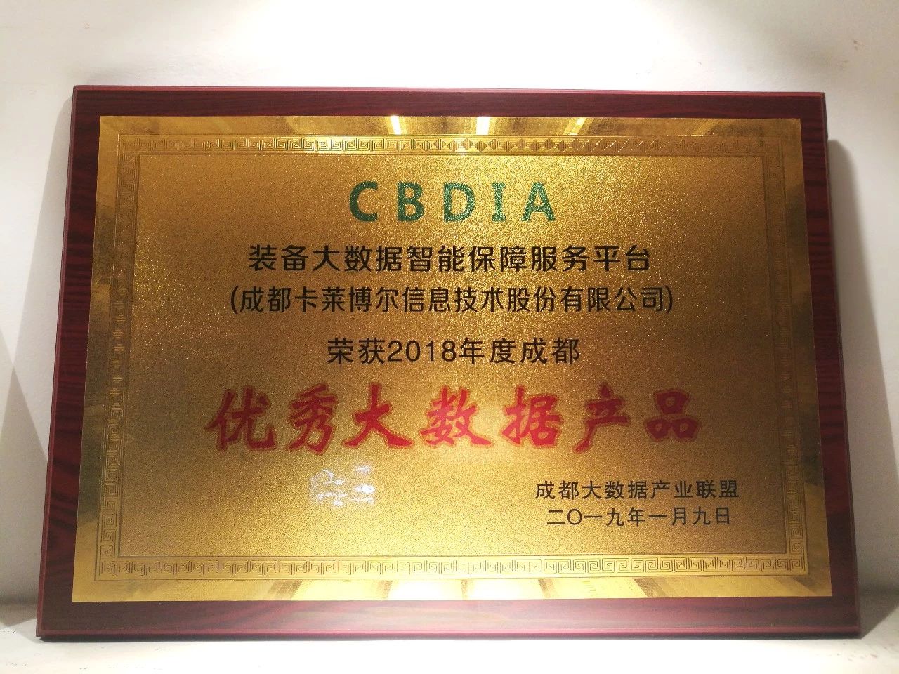 会上,众多优秀的大数据创新企业共聚一堂,共同探讨大数据发展与应用。卡莱博尔凭借高质量的大数据产品----“装备大数据智能保障服务平台” 荣获2018年度成都“优秀大数据产品”称号。